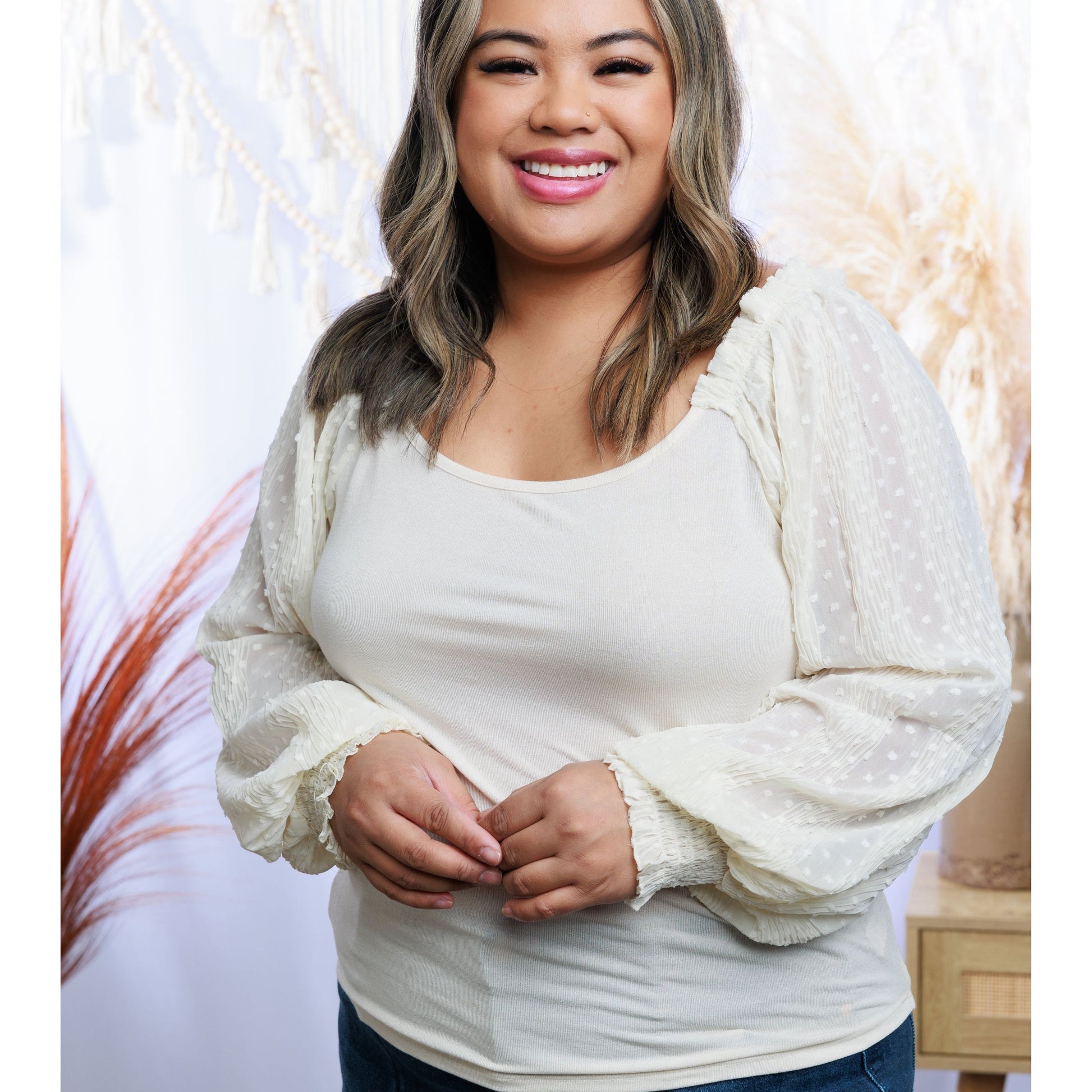 Look angelic in our Raglan Top! This elegant top is crafted with crinkle swiss dot fabric to make you feel like you've got wings. Sleek Balloon sleeves, square neck, elastic cuffs and a rounded hem keep you feeling comfortable and stylish. Spread your wings and take flight in this top!