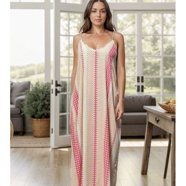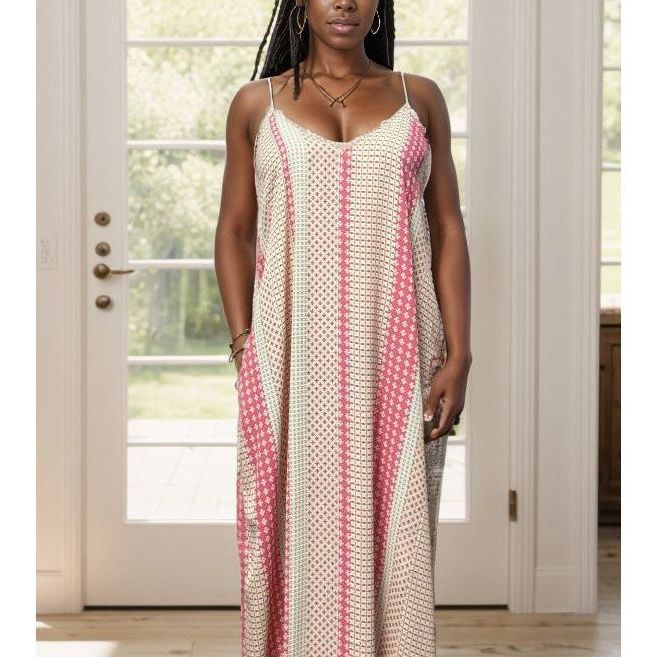 Rule the fashion game in our Behold Your Queen Maxi, featuring a v-neck and spaghetti straps for a flirty touch. The flowy fit guarantees comfort while the side pockets add practicality. Say hello to your new wardrobe staple!
