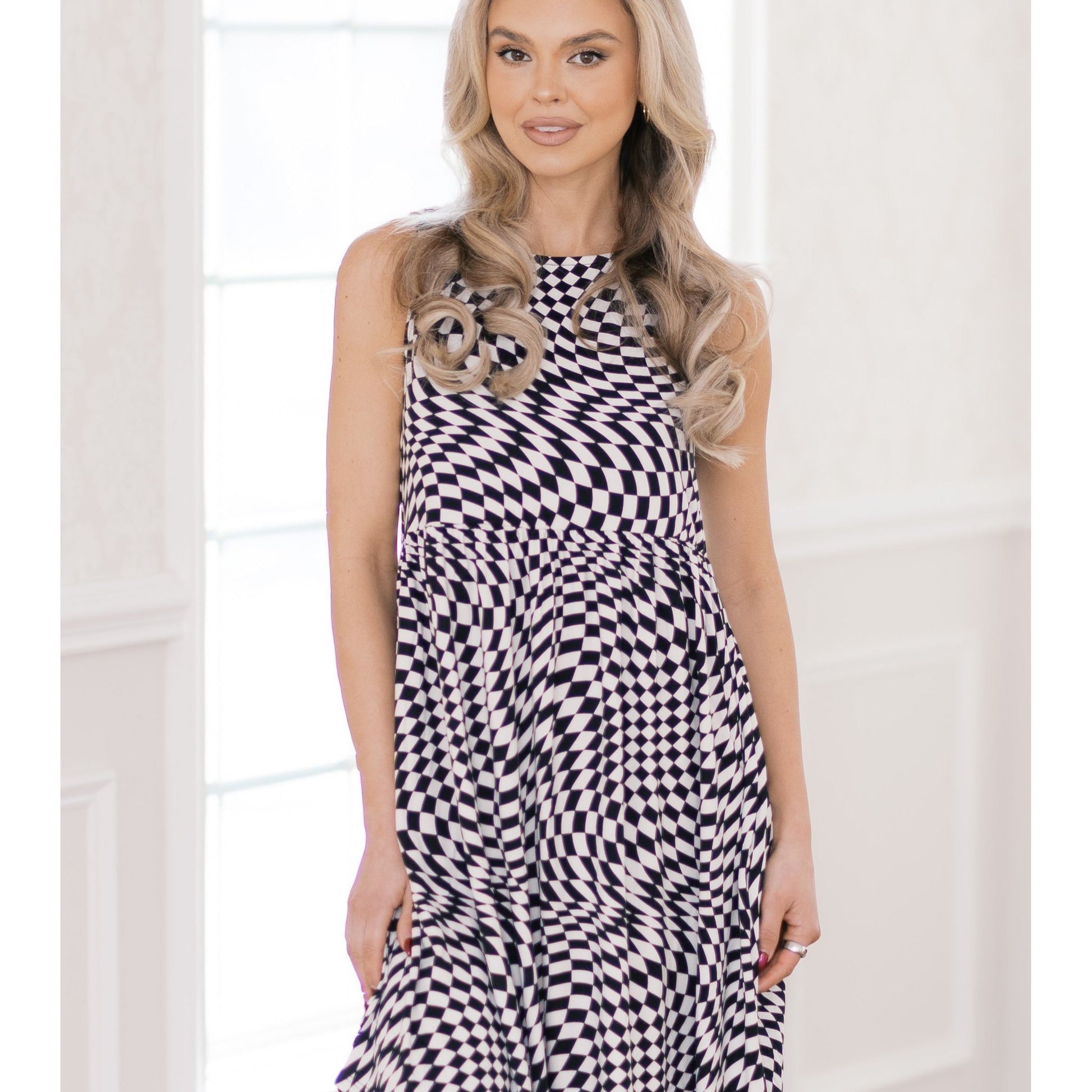 Get the best of both worlds with our Checkmate Sleeveless Dress! This soft and plush, knee-length babydoll dress will keep you comfortable and stylish. Perfect for any occasion, this dress is a true checkmate!