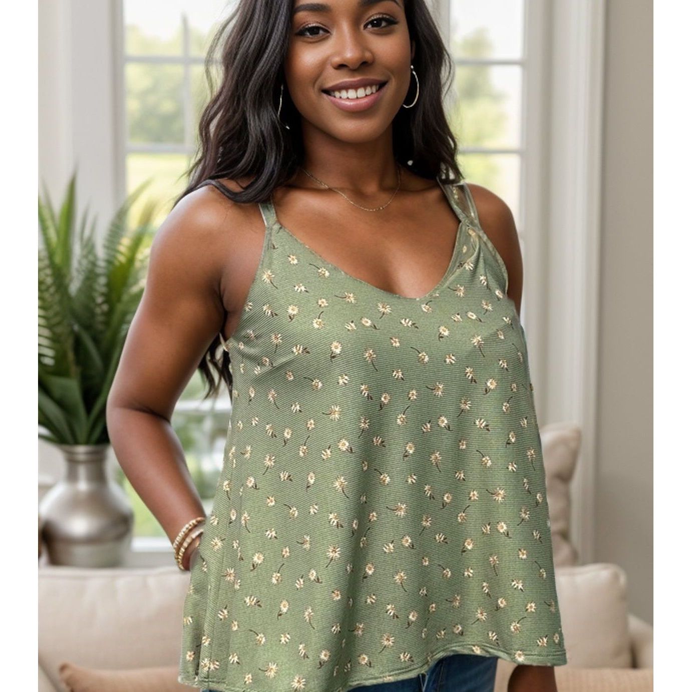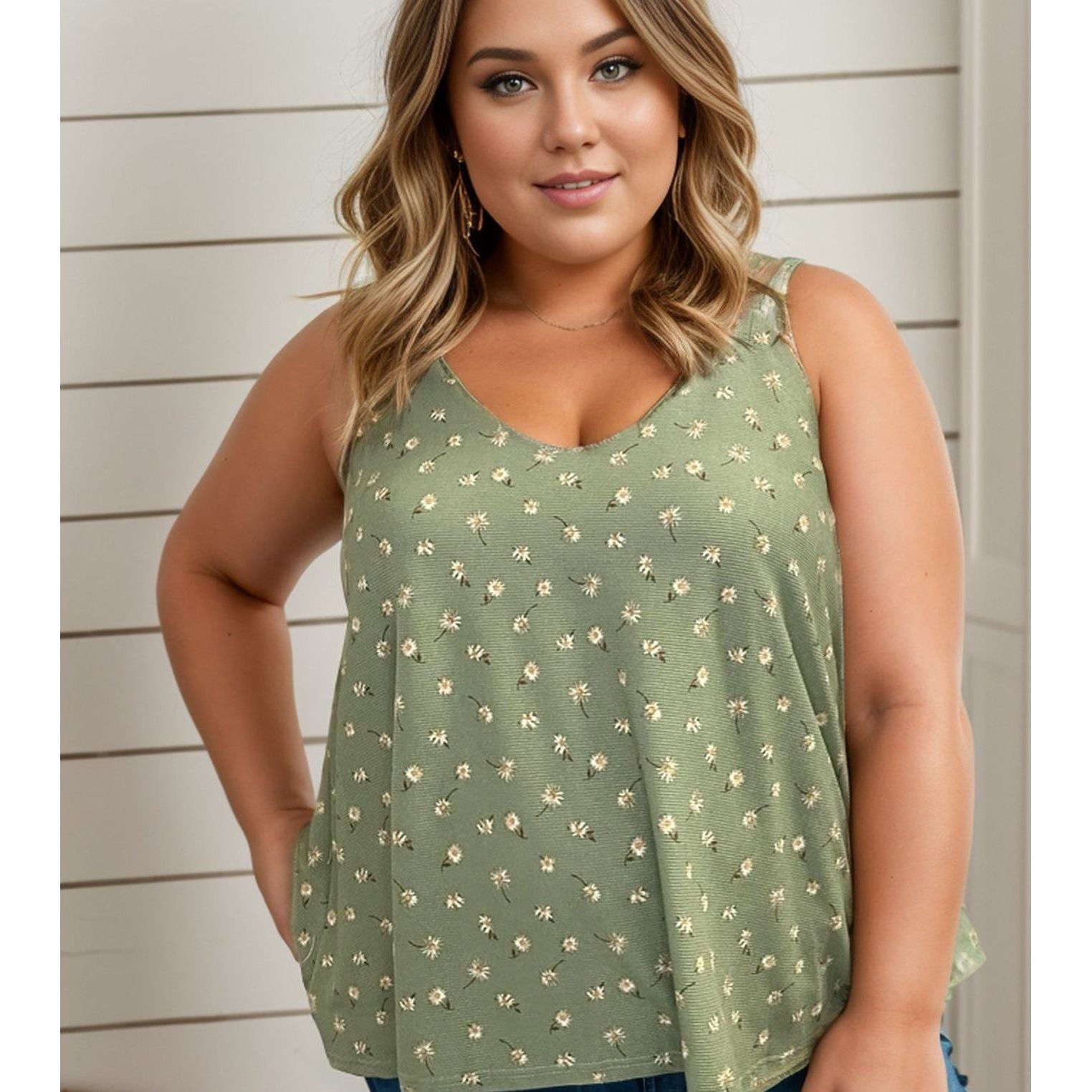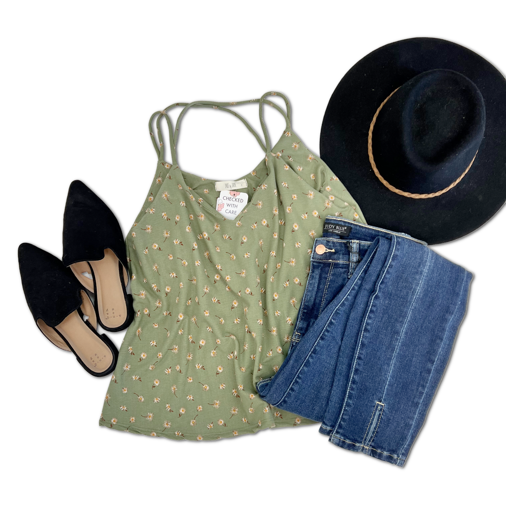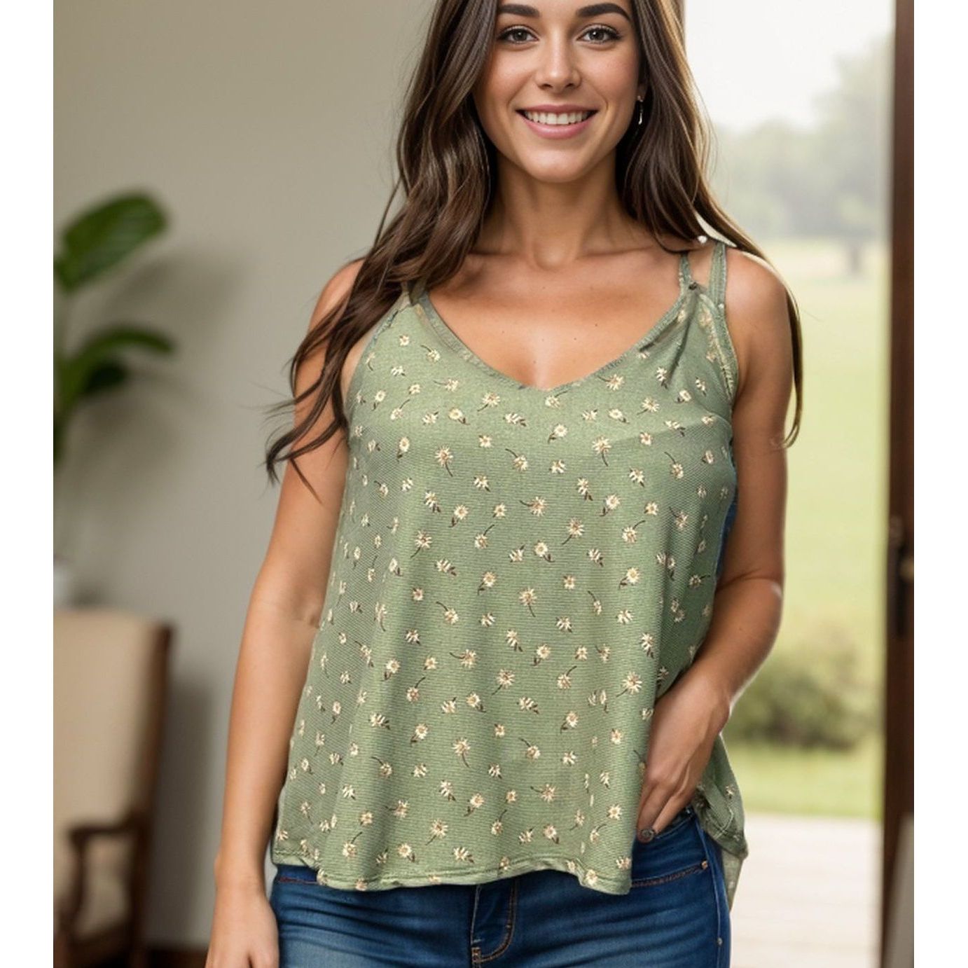 Introducing the Daisy Marie Tank! Enjoy a relaxed fit and playful daisy print while showing off your unique style with double spaghetti straps and a back criss cross detail. Perfect for any fun-loving, fashion-forward individual.