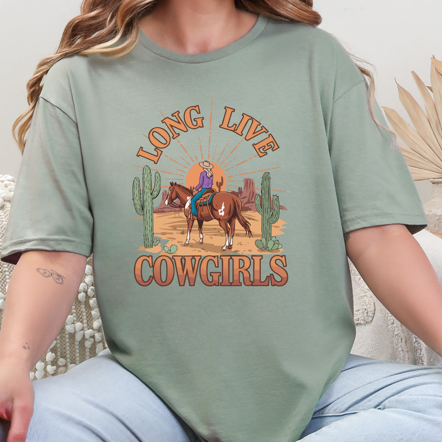 Celebrate your wild side with the Long Live Cowgirls T-Shirt! Featuring vibrant direct-to-garment printing, this tee offers bold, lasting color that won’t fade. Its comfy crew neck and short sleeves make it perfect for sunny days and rodeo nights alike. Show off your cowgirl spirit with a playful twist!