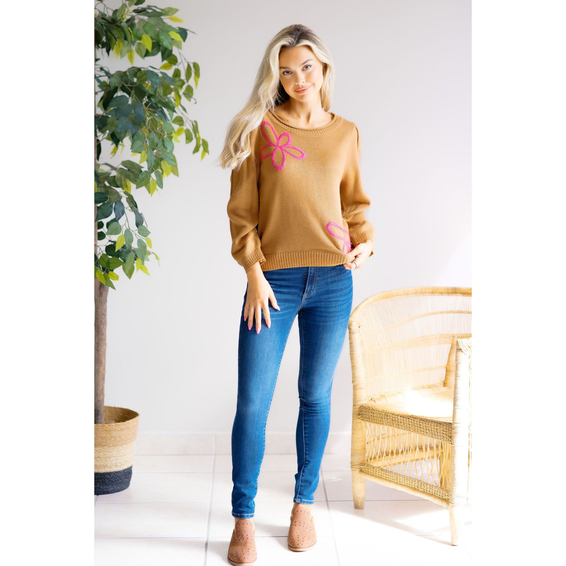 Embrace the charm of spring with the Falling for Florals Top. This fun Floral stitch top brings feminine touch to any outfit, perfect for brightening your day. Crafted for comfort and style, this top pairs effortlessly with jeans or skirts, making it a versatile addition to your wardrobe. Elevate your look and feel confident wherever you go with this must-have floral essential.