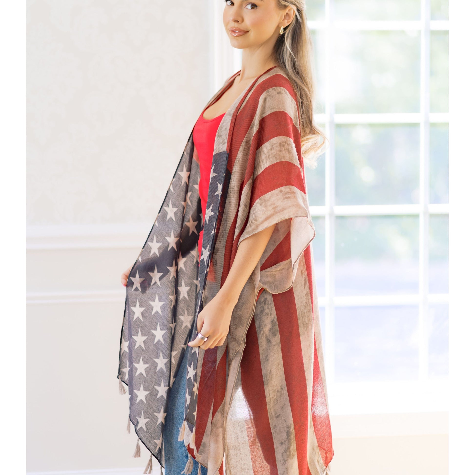 Show off your unique style with the Land of the Free Kimono. Perfect for any occasion, this statement piece combines bold design with comfort. Express your individuality and embrace your freedom with this one-of-a-kind kimono. (Great for festivals, lounging, and everything in between!) Own it today!