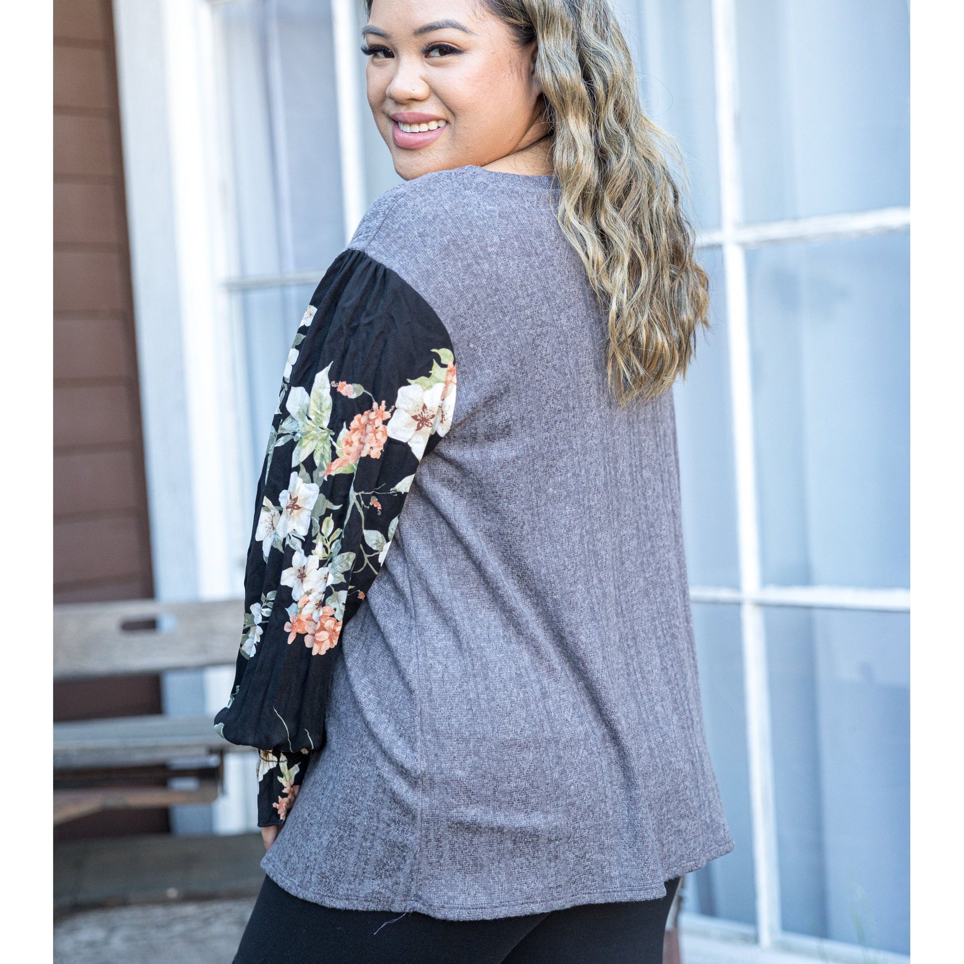 This long sleeve top is sure to uplift anyone who puts it on. Made from a soft brushed hacci, this top features a relaxed fit, round neckline and long balloon sleeves.