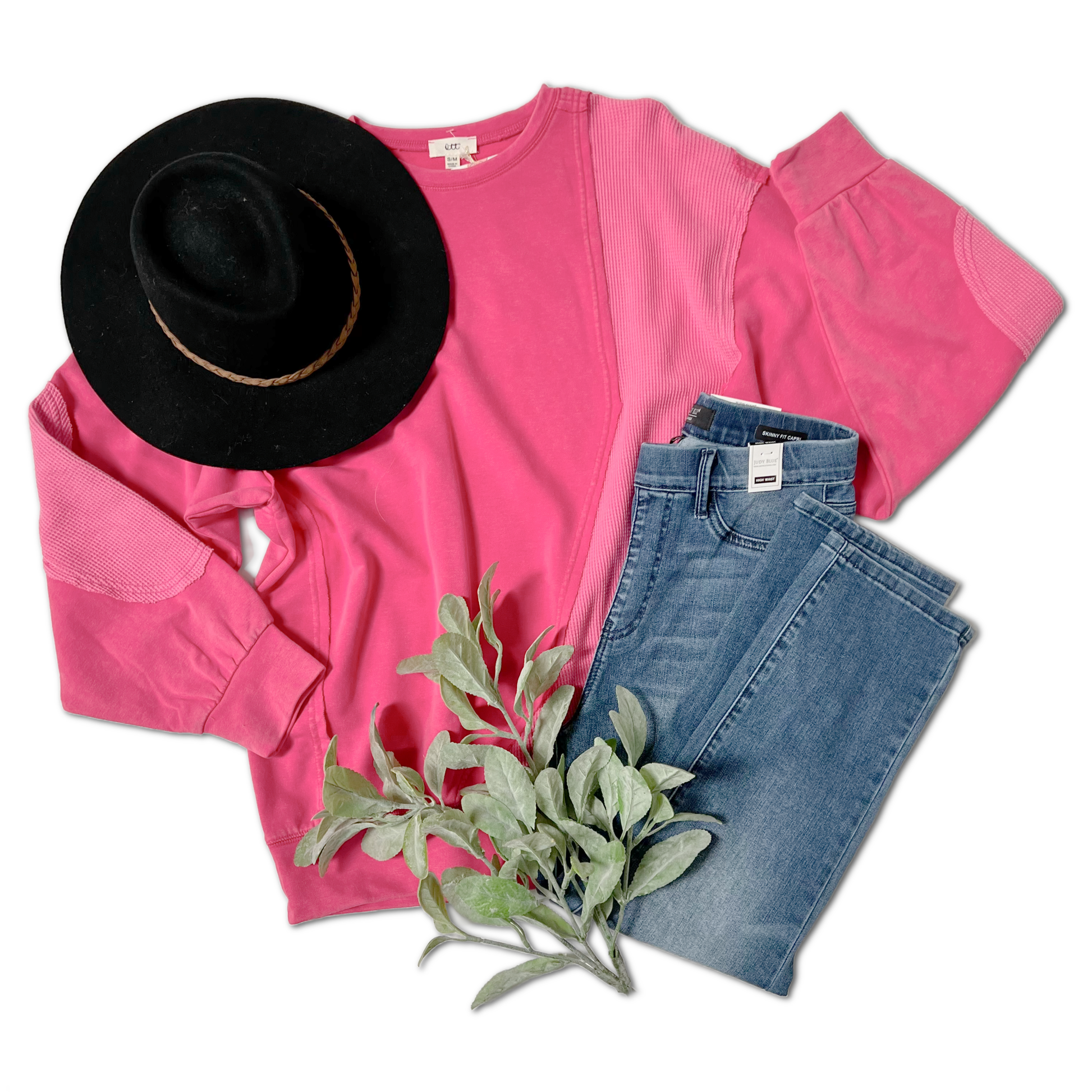 Get ready to cozy up in comfort with My Kind Of Sweatshirt! Featuring a mineral wash and thermal contrast, this relaxed fit sweatshirt is perfect for chilly days. With long sleeves and a banded hem, it's both stylish and functional. Embrace the vintage fuchsia color for a pop of trendy fun!