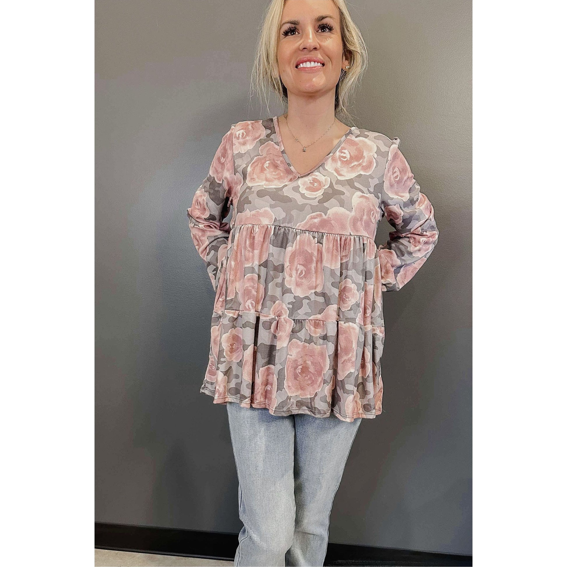 The Mystic Floral Babydoll is the perfect combination of comfort and style. With long bubble sleeves, a v-neck, and an empire hem, it offers a relaxed and flattering fit. The delicate floral print adds a touch of femininity to any outfit.