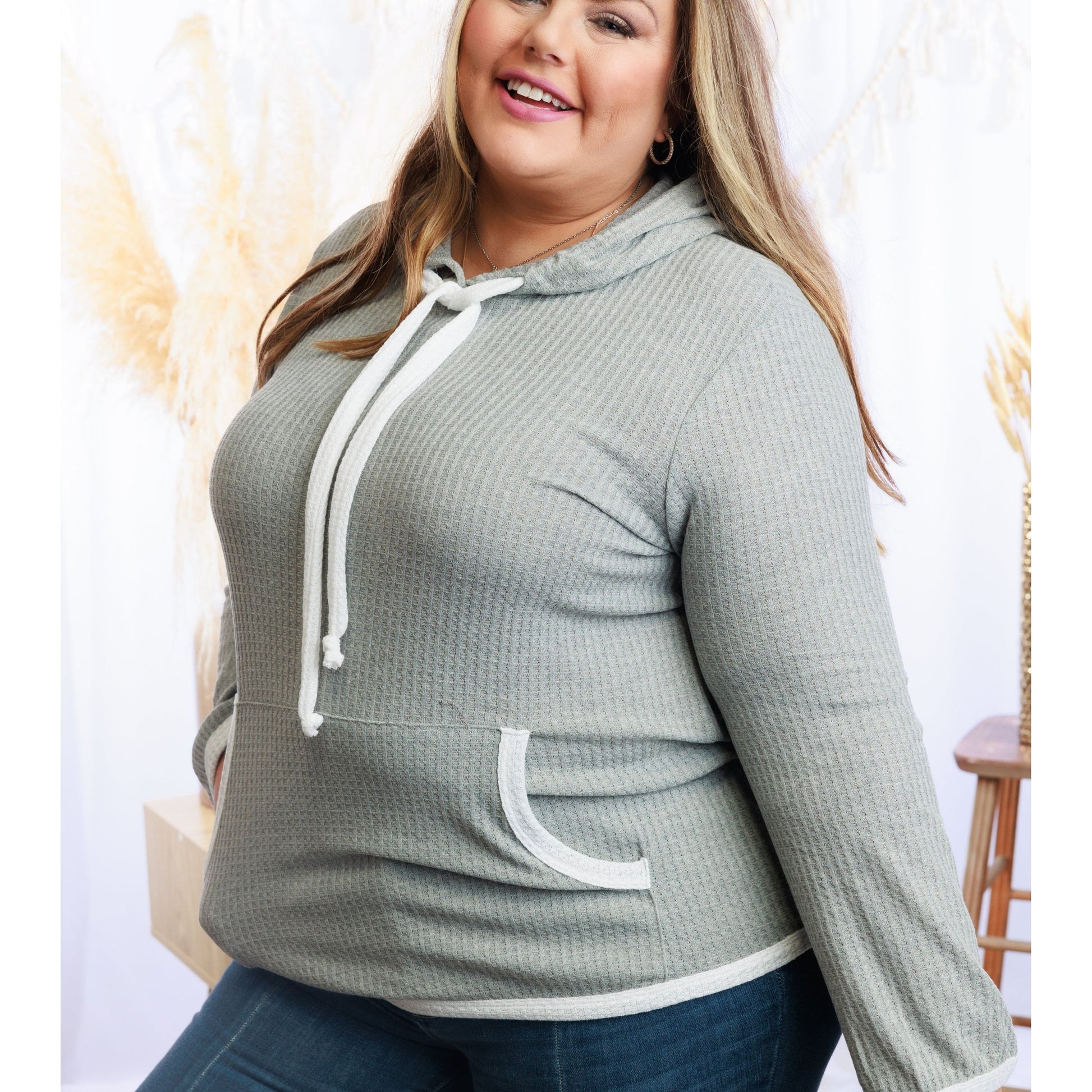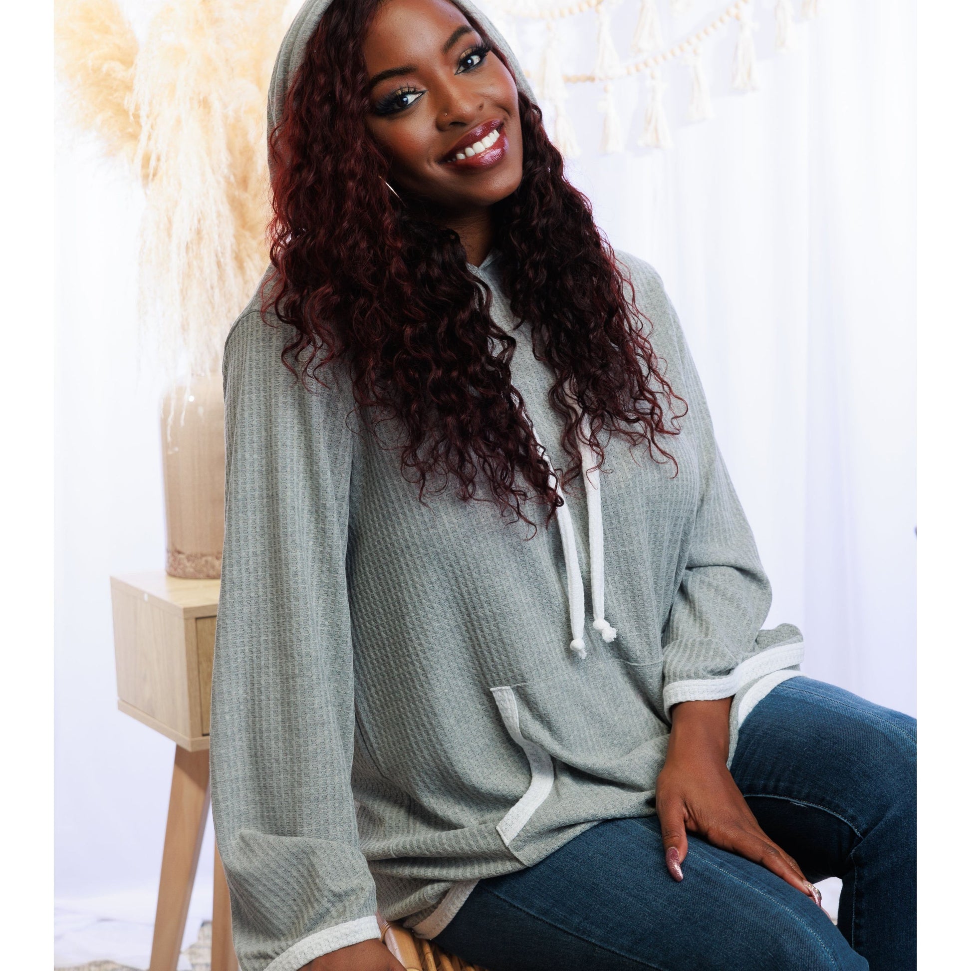 Be ready to dash anywhere in this stylish On the Run Hoodie! Made of cozy waffle knit, it features long bell sleeves, a kangaroo pocket, and a drawstring hood so you can pull up the hood and get going in a flash! Looking good has never been easier!