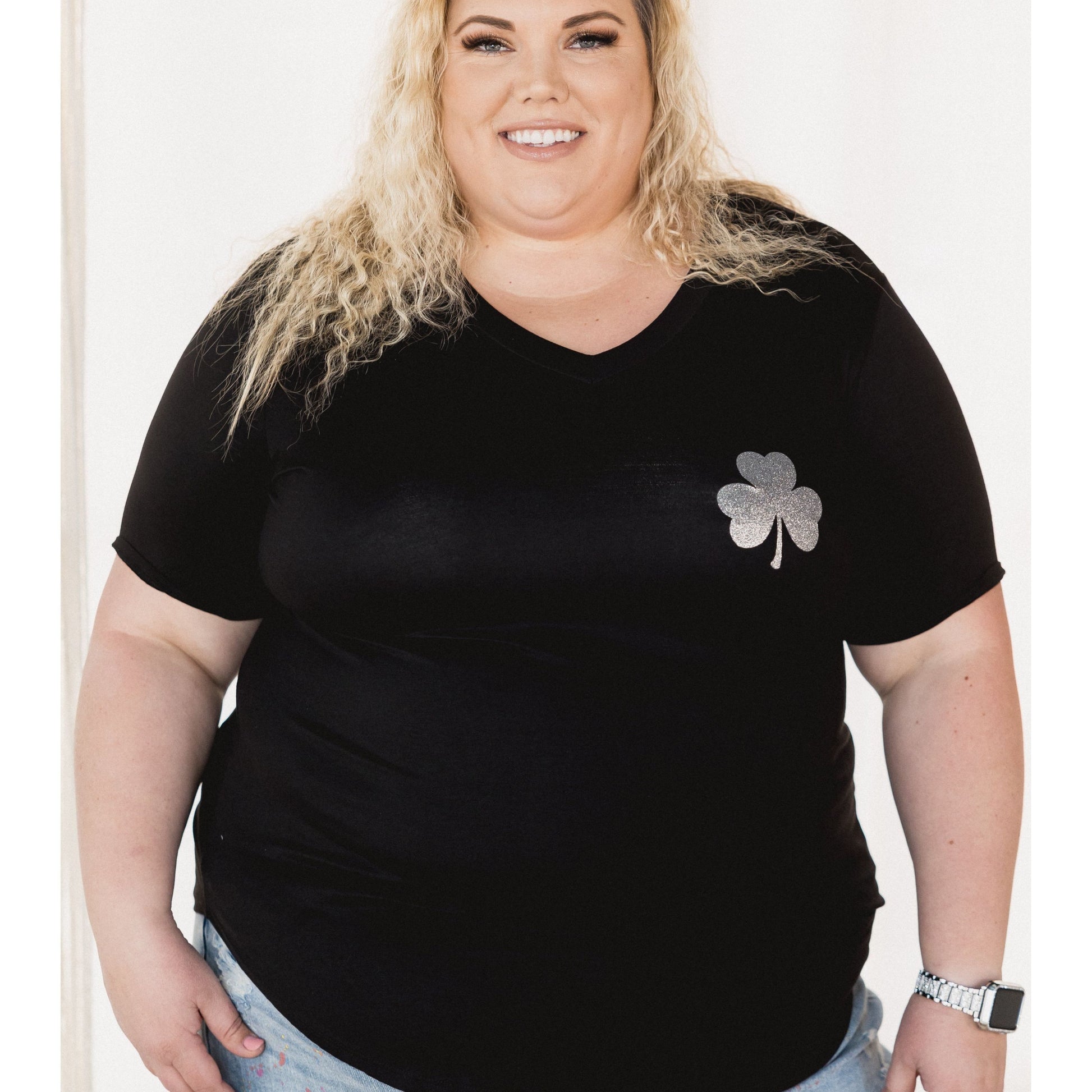 Wear that clover patch proud, in this super soft jersey knit short sleeve. With a relaxed fit, this top features a v-neck, short sleeves and rounded hem.