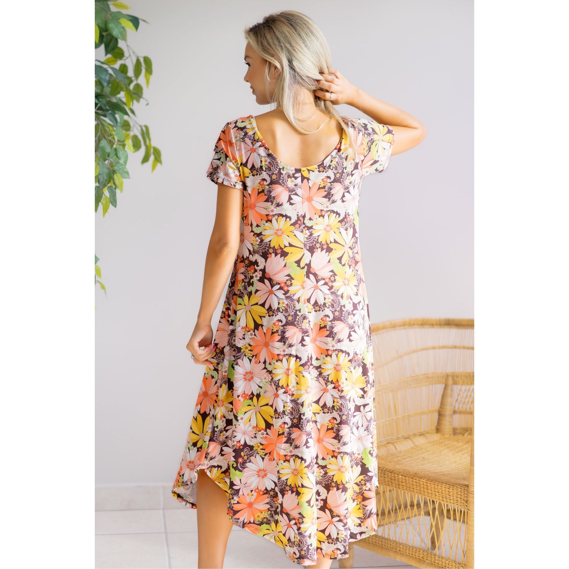 Embrace effortless elegance with the Petals in the Breeze Floral Asymmetrical Hem Midi Dress. Its flowing silhouette and unique asymmetrical hem create a graceful movement that captures attention. The delicate floral pattern adds a touch of romance, making it perfect for both daytime outings and special occasions. Designed to flatter every figure, this dress combines comfort with style, ensuring you feel confident and radiant wherever you go. Elevate your wardrobe with a piece that celebrates femininity and charm.