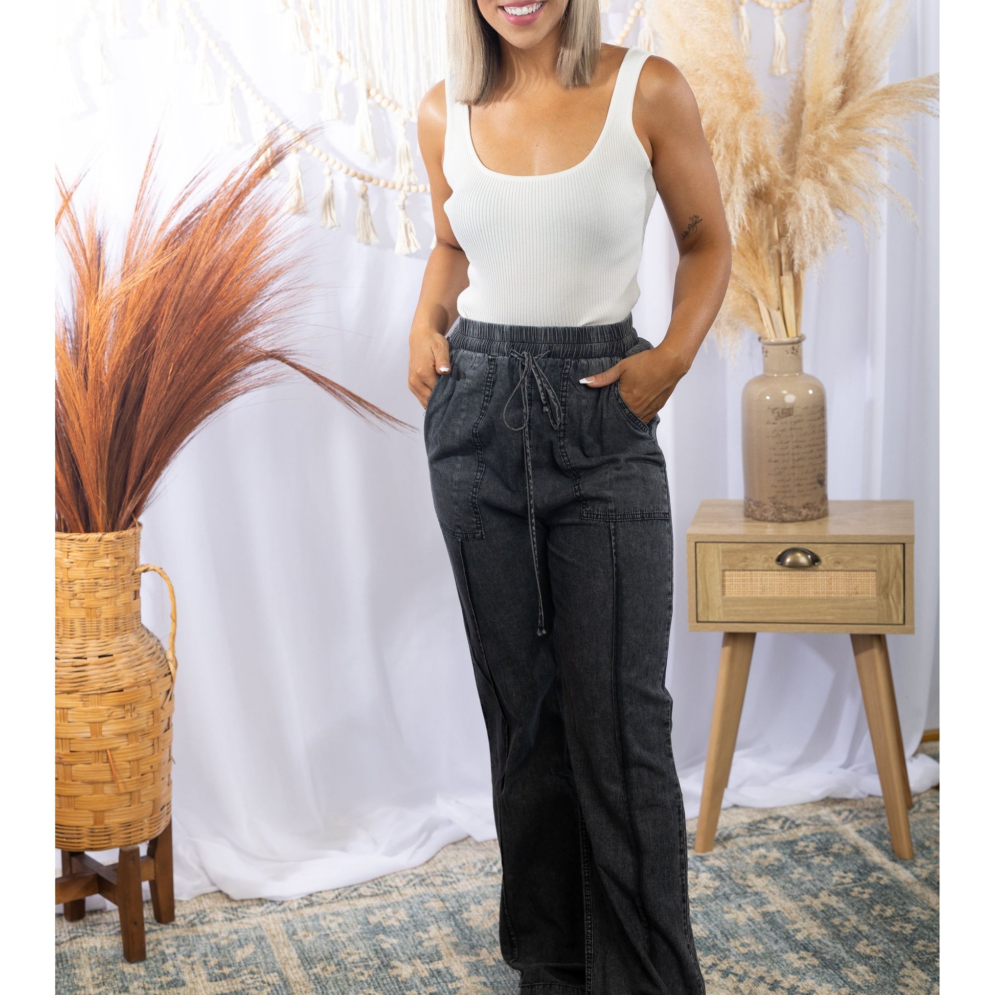 Slay your off-duty look with these Relax & Unwind Chambray Pants! From the mineral-washed fabric to the easy elastic waist, these are the coziest pants around—perfect when you wanna put your feet up and veg out like a cool cucumber. Rock on!