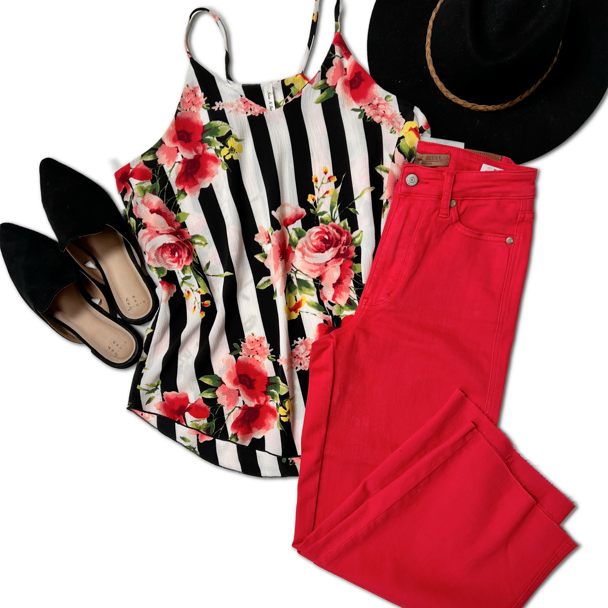 Introducing Scarlette Rose's Judy Blue Tummy Control Crops - high waisted with a tummy control panel for a flattering fit. These crops feature great stretch for all-day comfort and a wide crop leg with a raw hem for a trendy twist. Available in striking red.