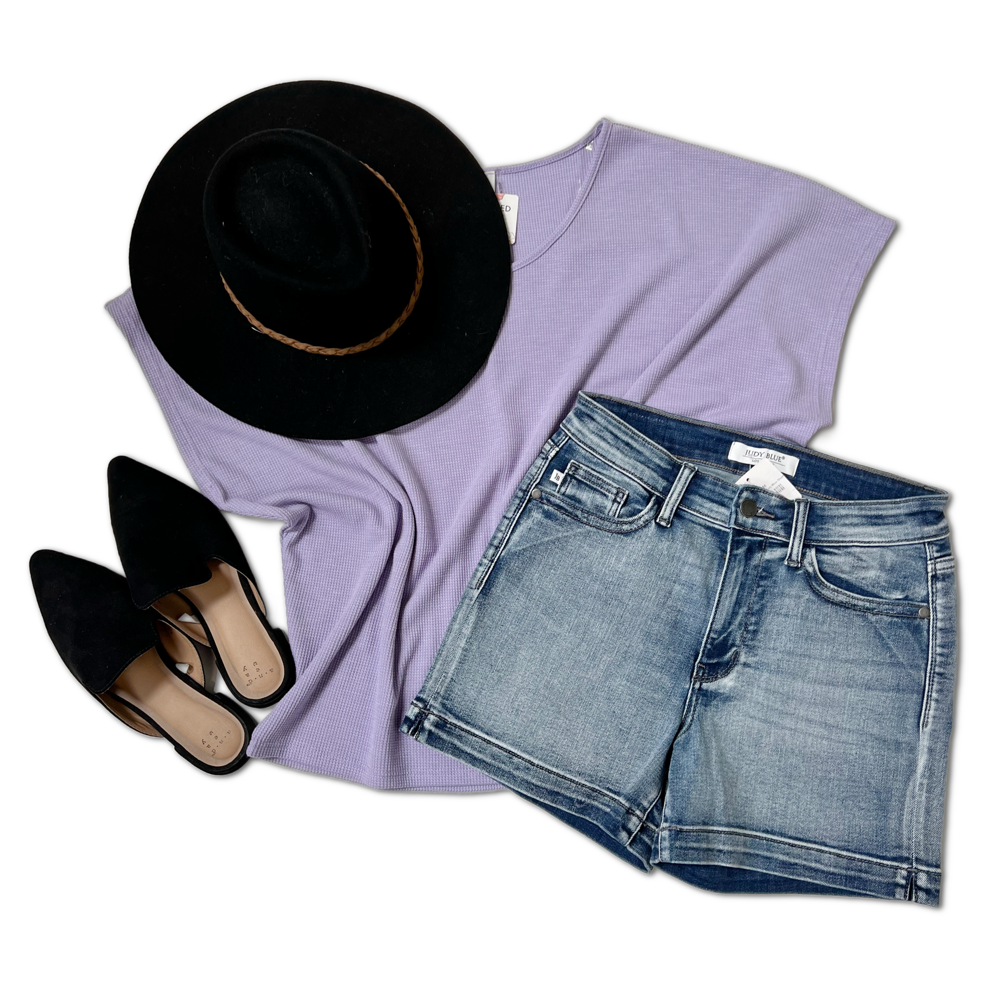 Get your style on point with the Style Confidence Lavender Dolman. Made from light weight thermal knit, this top features a round neck and short dolman sleeves for a comfortable fit. The tapered hem adds a touch of uniqueness to your look. Perfect for those breezy days. #confidentdolman