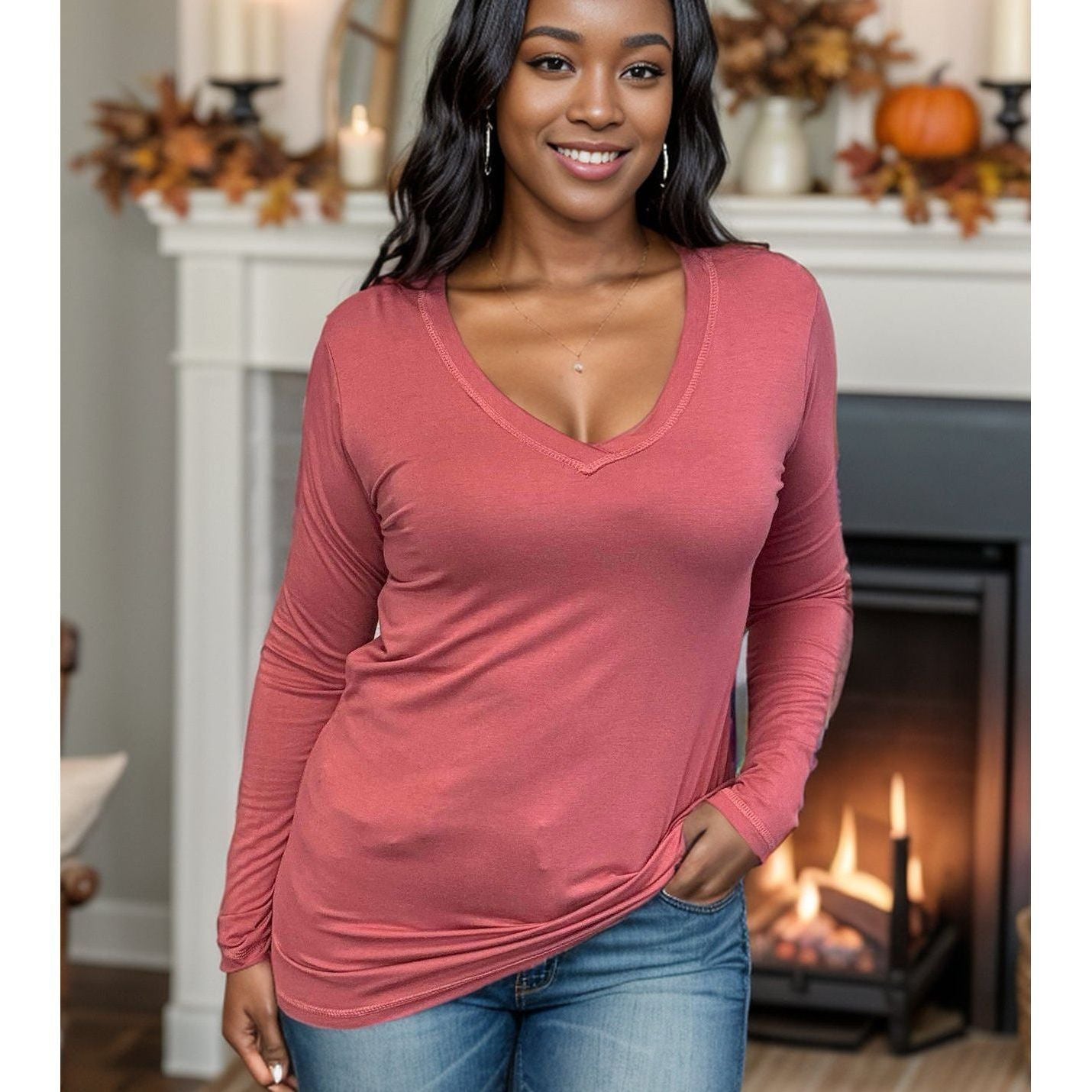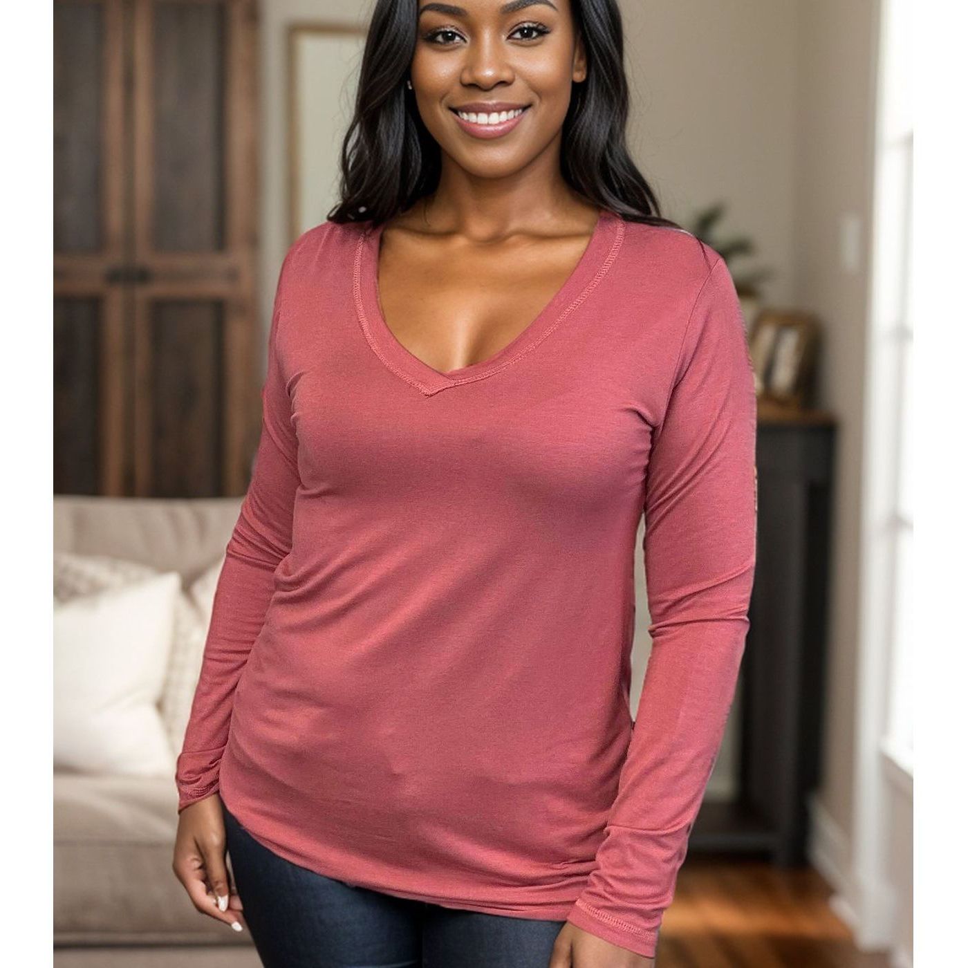 Explore in style with our Take Me Everywhere - Marsala top! Made from a soft jersey knit, this v-neck top features long sleeves and unique reverse stitch details. Get ready for your next adventure in comfort and style.