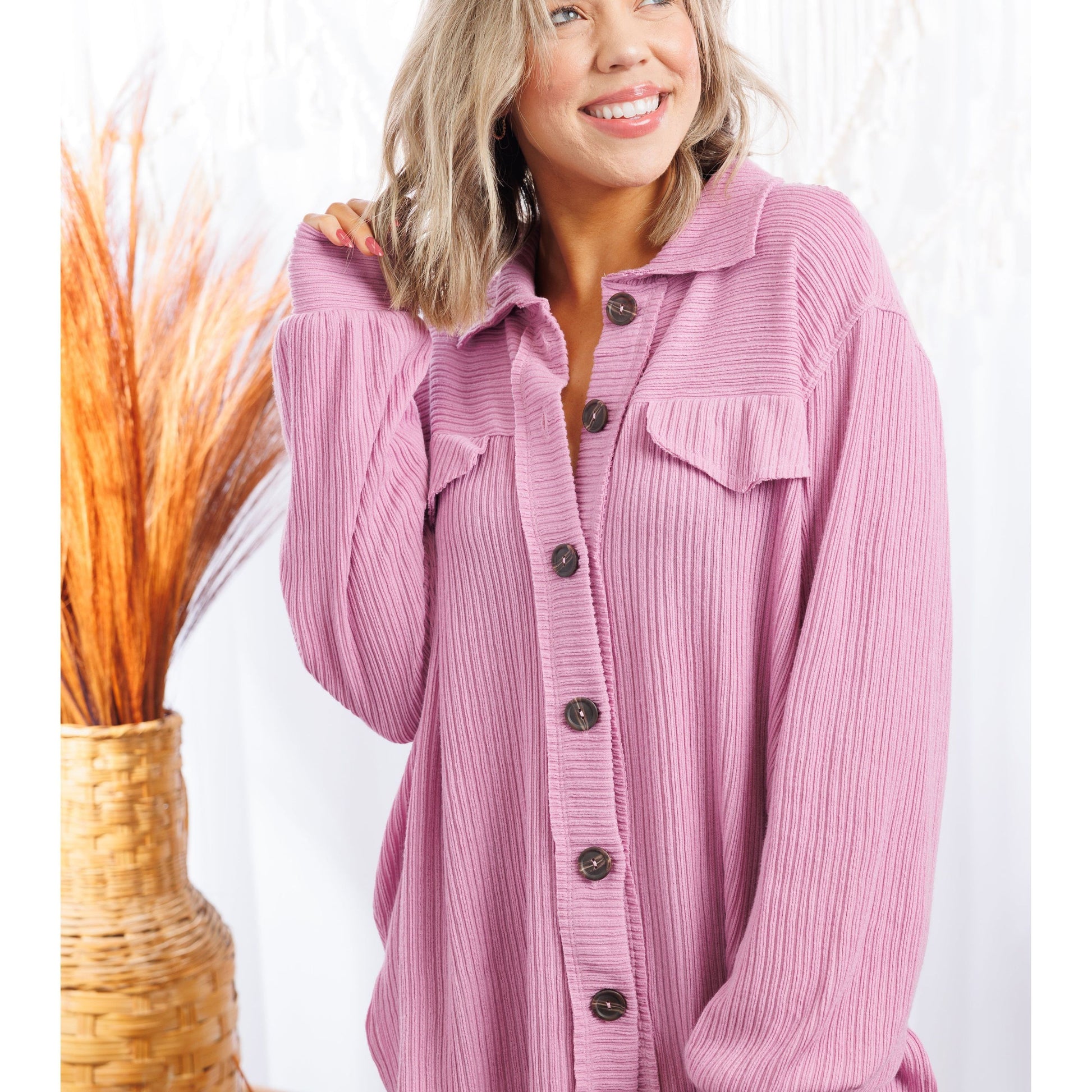 The Tulip Dreamin' Shacket is your go-to for chillier days! With a textured knit, collar, and button closure, it's sure to keep you cozy. Plus, long balloon sleeves and front pockets give an extra bit of style. And in a perfect Spring lavender, you'll be dreamin' of tulips in no time!